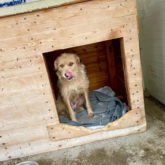 Nele ist nur süß. Sie sagt Jedem, auch völlig Fremden freundlich Hallo und fordert zum Streicheln und Schmusen auf. Als wir aus Jux in ihre Hundehütte reingeklettert sind, kommt sie nach, legt sich dazu, zeigt ihren Bauch „Bitte bitte streichel mich“. Krabbelst du aus der Hütte raus, kommt sie nach, wedelt mit dem Schwanz, schaut zu dir „Und nun? Magst du nochmal auf ein Schmusi?“ und stellt sich an, lehnt das Köpfchen an dich dran und unser ganzes Herz schreit, weil Nele wirklich ganz dringend ein gutes, liebenswertes Zuhause braucht. Sie ist kein Straßenhund, kein robuster „Zwinger schaff ich auch noch Hund“. Nele ist ein eher ruhiger Typ, lieblich und anhänglich.