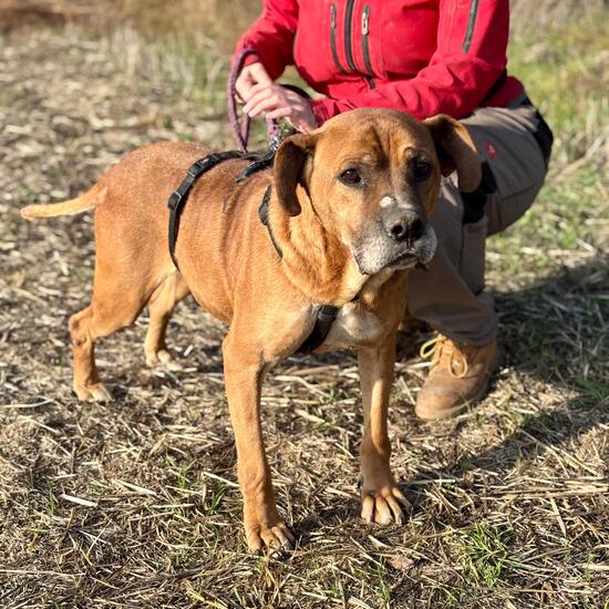 Mit ihrer Schulterhöhe von ca. 53 cm ist sie die perfekte Begleiterin für Menschen, die gerne spazieren gehen. Sie wird sicher große Freude daran haben, mit ihrem Lieblingsmenschen die Welt neu zu entdecken.
