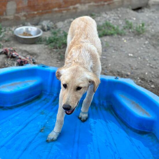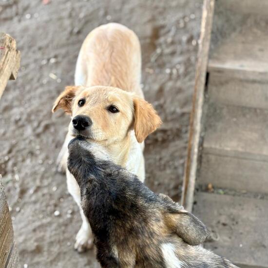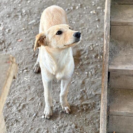 Janne erinnert optisch an eine zarte Labbi oder Retrievermixhündin. Sie und ihre 4 Geschwister wurden im Shelter unverschuldet abgegeben, eben einfach nicht mehr gewollt… Janne zeigt sich verspielt und kuschlig. Bei der Fütterung sucht sie sogar zurückhaltend Schutz beim Menschen – sie weiß wo es gut ist. Wir hoffen möglichst bald neue Besitzer zu finden, die unsere liebe unerfahrene Janne in ihr Herz schliessen und nie wieder hergeben.