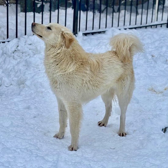 Unser kleiner heller Freund sieht aus wie ein Labrador oder Retrievermischling. Körperlich und seelisch einer von den Zarten – für alle, die keinen Rocker suchen, sondern eher den zurückhaltenden freundlichen Kumpel, dem man die Pfote halten muss, wäre Joshua der Hund.
