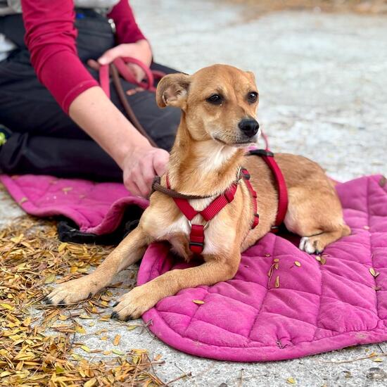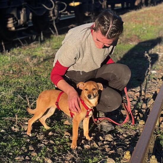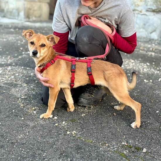 Uleika ist eine kleinbleibende Junghündin, die aufgeweckt ist und fröhlich rumwuselt. Ihren ersten Spaziergang in ländlicher Umgebung, wo auch ihre Vermittlungsbilder entstanden sind, hat sie mit Neugier meistern können. Fremde plötzliche Geräusche, die sich nicht kennt, fand sie verunsichernd. Da muss sie natürlich auch im neuen Zuhause üben.