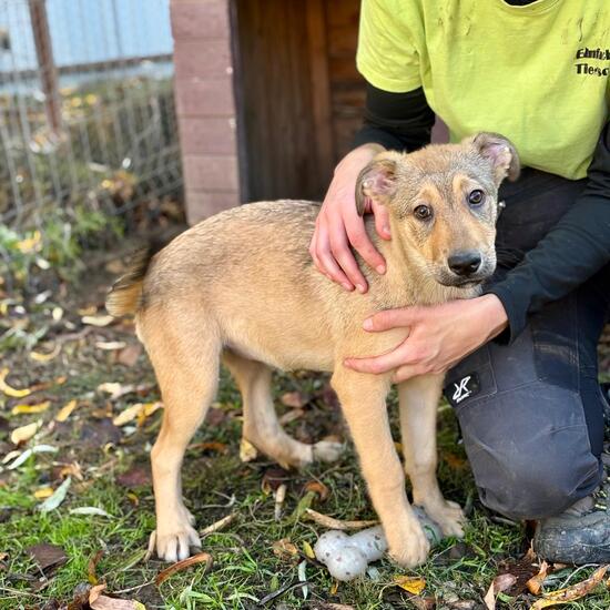 Yoka ist eine freudige kleine Maus. Kontaktfreudig, verspielt, welpentypisch auch mal verpeilt, macht Yoka einfach gute Laune 🙂 sSe spielt sehr gerne mit Bällen, liebt es zu kuscheln, lässt sich hochheben und bestaunt dann die Welt von oben – vielleicht hält sie Ausschau?