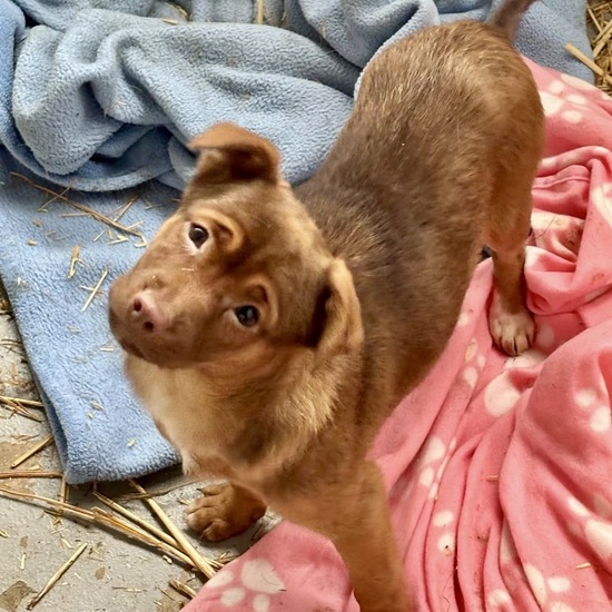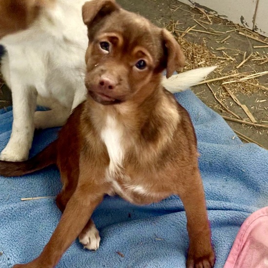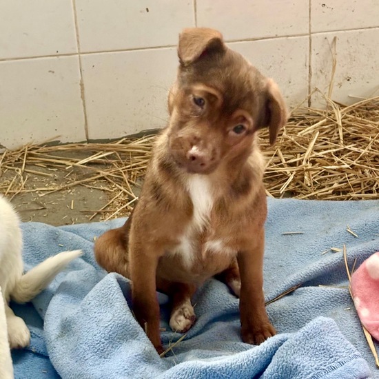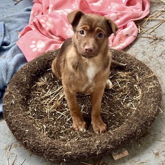 Henriette ist ein Welpe von unserer Helma und ein echter Wirbelwind. Sie steckt voller Energie, ist für jeden Quatsch zu haben, Decke schütteln, durchs Stroh toben, Schnürsenkel klauen, das Brüderchen ärgern – nur stillsitzen, das ist noch nicht ihr Ding. Schaut euch diese Kulleraugen an und ihr wunderschönes braunes Fell, erinnert es doch an zuckersüße Schokolade – aber lasst euch nicht täuschen, Henriette hat definitiv den Schalk im Nacken!