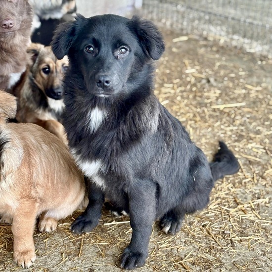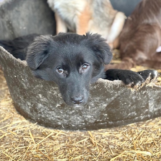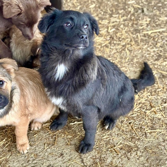 Milayne ist eine ganz besondere kleine Maus: Unter ihren sechs Geschwistern sticht sie mit ihrem schwarzen Fell heraus, das in der Sonne leicht bräunlich glänzt, und ihrem hübschen weißen Fleck auf Brust und Hals. Mit ca. 41 cm ist sie ein kleiner, flauschiger Wirbelwind – ihr leicht wuscheliges Fell lädt förmlich zum Kuscheln ein.