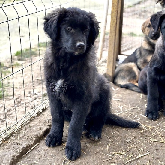 LENN ist ein ca. 43 cm großer Welpe mit einem besonderem schönem schwarzenFell: einige weiße Härchen an der Brust und eine weiße Rutenspitze, die ihn unverwechselbar machen.