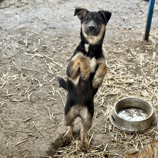 Bisher kennt Gretel ausschließlich das Leben im Shelter. Sie wurde liebevoll von ihrer Mama aufgezogen und tobt nun ausgelassen mit ihren Geschwistern im Freilauf. Sie zeigt dabei ein sehr gutes Sozialverhalten und ist welpentypisch verspielt und freundlich.