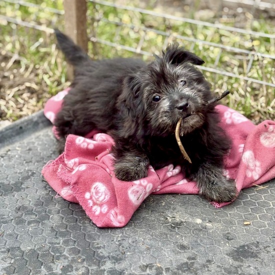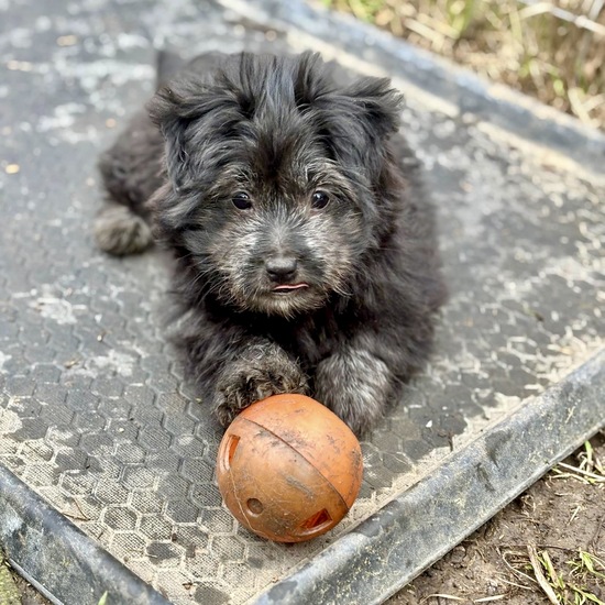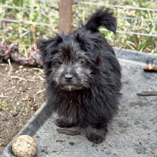 Rea hat ein wenig gelocktes krauseliges weiches Fell und erinnert an einen Pudeleinschlag – im Moment erinnert sie etwas an einen Monchichi 😉 Ihre Schwester Ruth hat ähnliches gelocktes Flauschefell, aber wieder etwas anders. Die kleine Rea mag es ruhiger und ist die Abwartende unter ihren Geschwistern. Neugierig ist sie aber dann doch immer. Wenn die anderen vormoppeln kommt sie dann auch gucken :-)und dann wird losgespasst!