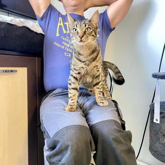 Whisky sitzt beim Frühstückstisch dabei, kuschelt gern körpernah und macht wohlige Milchtritte. Er ist einfach gern unter Leuten und überall dabei. Er kennt es auch nicht anders.