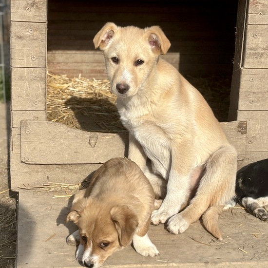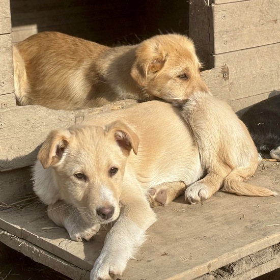 Xandra ist im Dezember 2025 geboren und wird voraussichtlich eine Schulterhöhe von etwa 45–50 cm erreichen. Im Shelter hat sie sich schnell eingelebt: Sie wuselt fröhlich mit den anderen Welpen herum, spielt ausgelassen und zeigt sich dabei als neugierige, aufgeschlossene und menschenbezogene kleine Hündin.