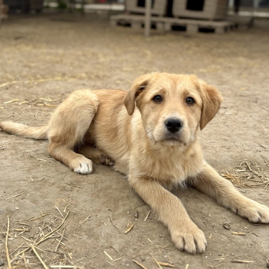Im Shelter hat sie sich schnell eingelebt: Sie wuselt fröhlich mit den anderen Welpen herum, spielt ausgelassen und zeigt sich dabei als neugierige, aufgeschlossene und menschenbezogene kleine Hündin.